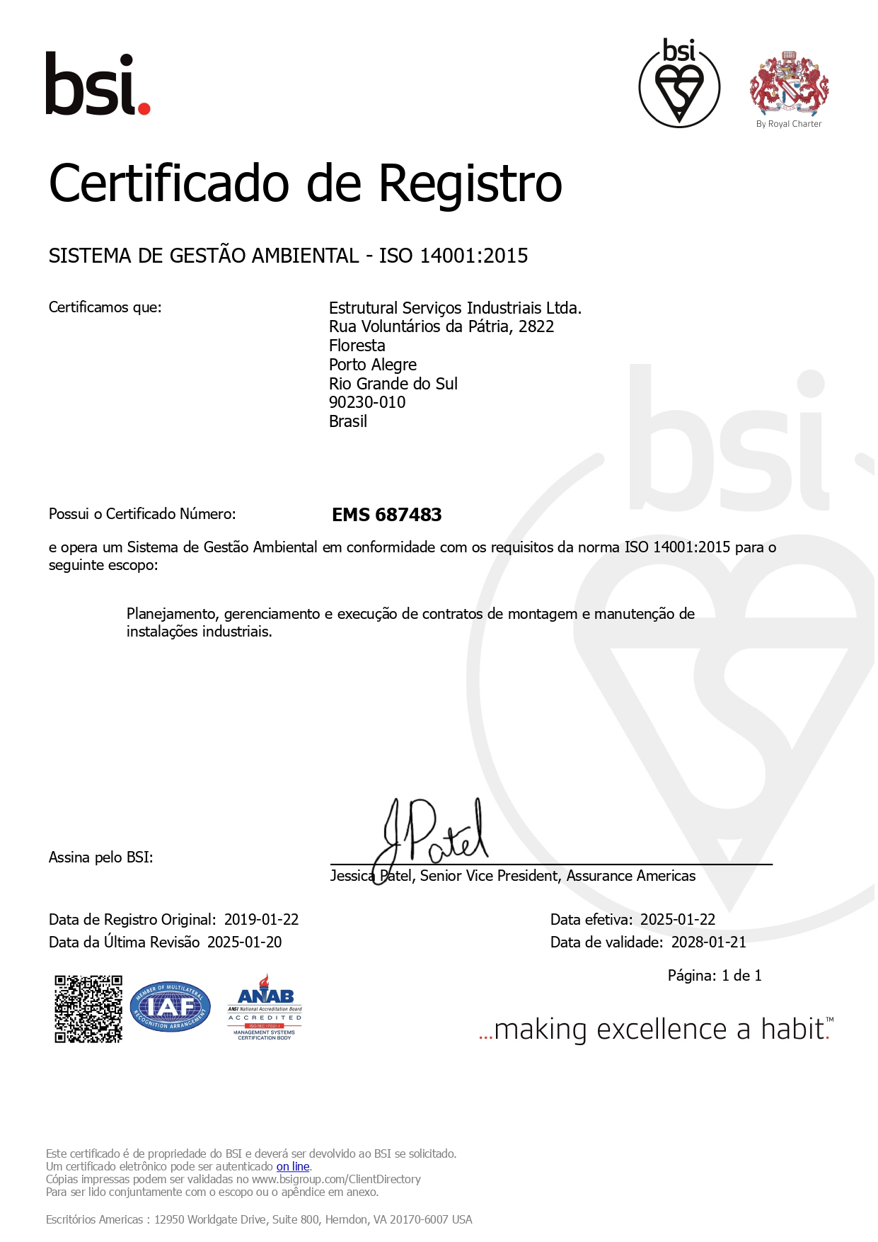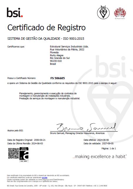 Nosso compromisso consiste em planejar, gerenciar e executar atividades de montagem e manutenção industrial, buscando o desempenho eficiente e o aperfeiçoamento contínuo, baseado na conformidade com os requisitos legais, com os requisitos do Código de Conduta, com os requisitos contratuais e com as expectativas de proprietários, clientes, funcionários, fornecedores, órgãos governamentais e da sociedade.